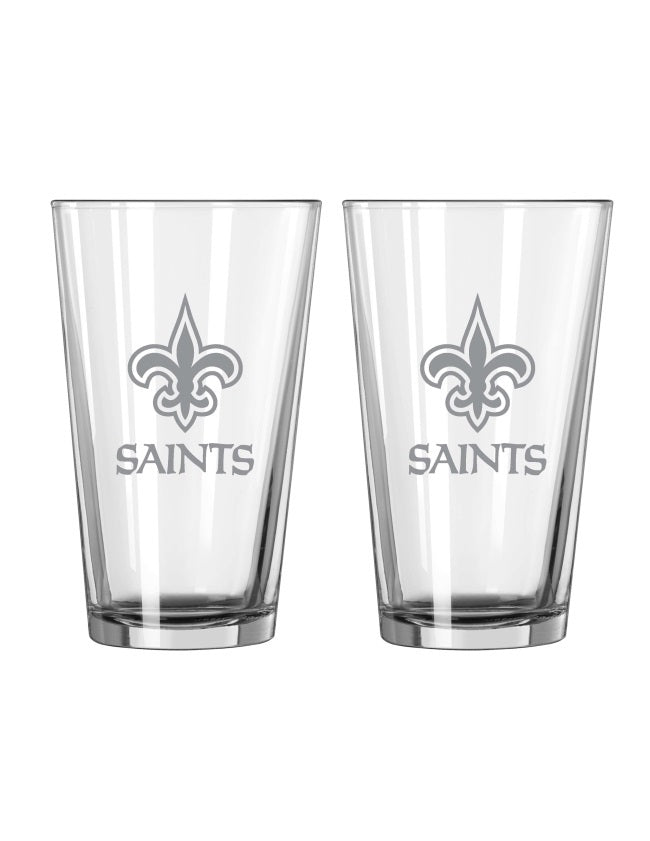 These pint glasses are perfect for game day parties or as a gift. It is decorated with a colored team logo and a frost pattern. Holds 16 fluid ounces. Set of 2.
