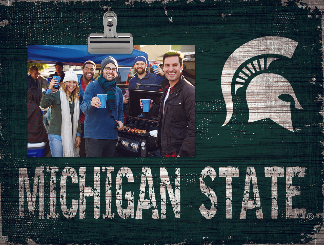 These 10 inch by 8 inch wood Clip Frame are perfect for displaying your favorite tailgate snapshot and include a metal bracket attached to the back for hanging. Made in the USA.