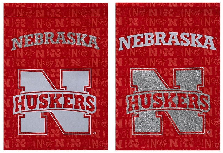 Proudly show off your team pride outside of your home with this high quality eye catching flag. Decorated with a different design on each side, this high quality nylon fabric flag will leave no one questioning what team you are most loyal to! Each side is decorated with eye catching glitter details around the team name and logo. Accent your outdoor space with team loyalty by proudly displaying this University of Nebraska Glitter Accented Double Sided Garden Flag!