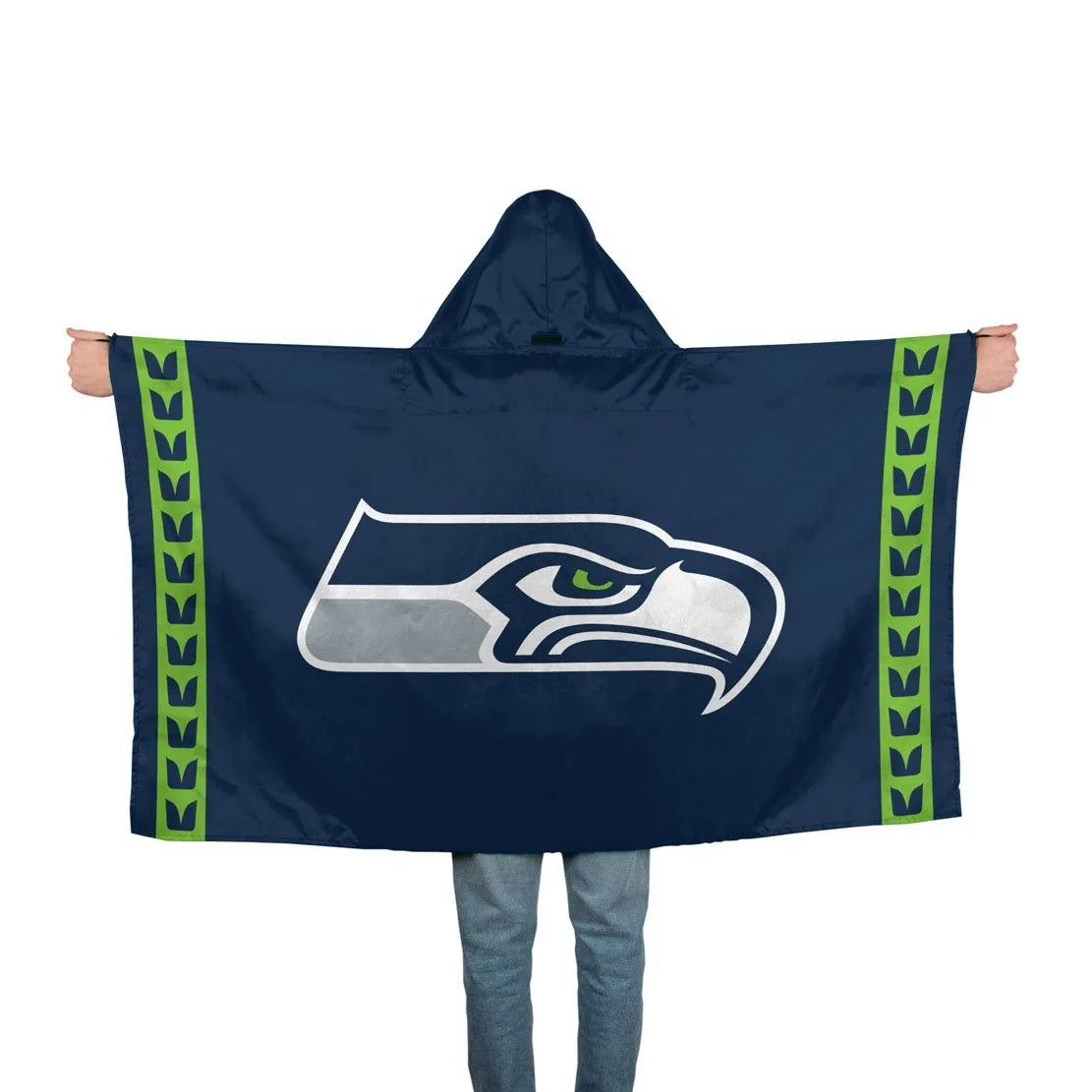 The Hoodie Flag is a must have game day accessory! This wearable 3'x5' flag features a sewn-on hood, allowing fans to show their support on the go. Made with durable stitched ends and team-specific packaging, it is perfect for tailgates, game days, parties, and more. Sewn thumb loops, hook and loop closure and adjustable hoot string.