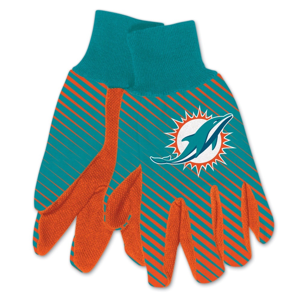 Comfort and style meet with these gloves, featuring the colors and logos of your favorite NFL team. These gloves are constructed of heavyweight cotton twill with rubber grips on the palms. Not only will these gloves keep your hands warm during the cold winter months, but can also be used to keep your hands clean while doing yard and garden work.