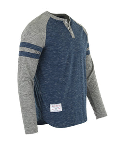 STYLE - Athletic Fit modern contrast sleeve chic henley for men with classic, casual, retro and activewear look and feel.