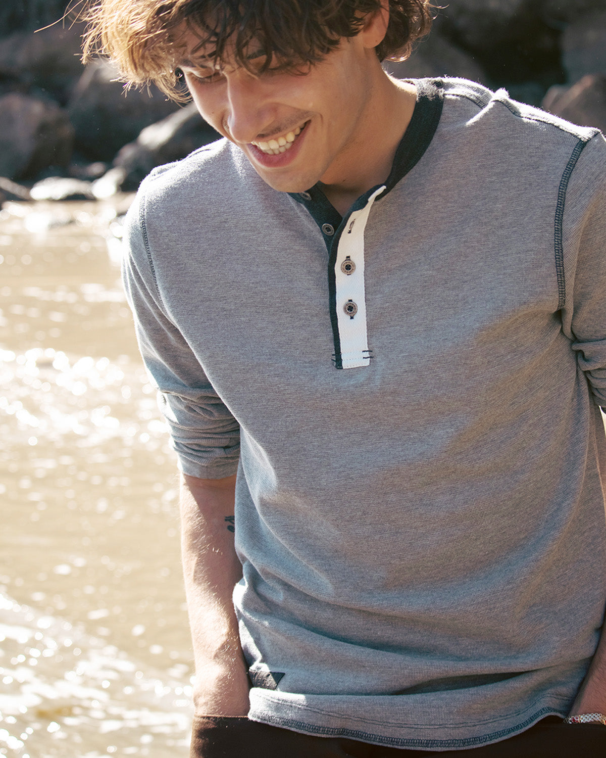 Vintage Burnout Garment Wash Lightweight Thermal Henley
